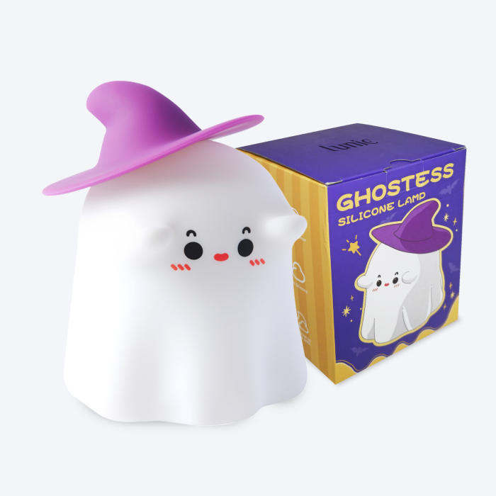 Lampă adorabilă din silicon moale în fomă de fantomă, perfectă pentru a crea o atmosferă relaxantă. Are 3 niveluri de intensitate reglabilă prin atingere, funcție Timer și design portabil cu acumulator inclus. Ideală pentru orice moment al zilei!